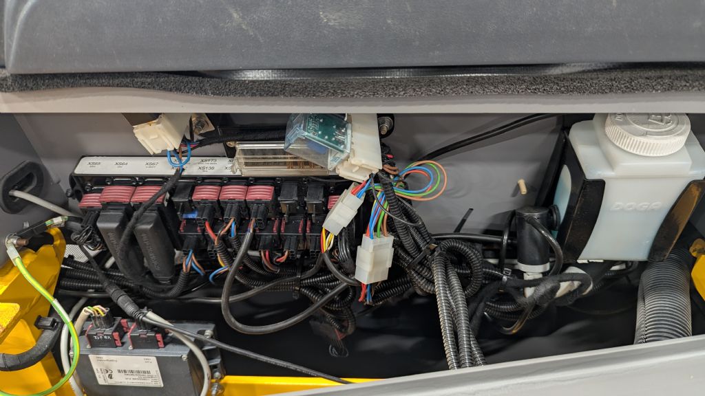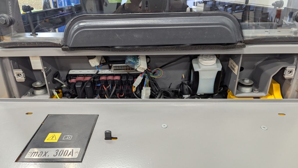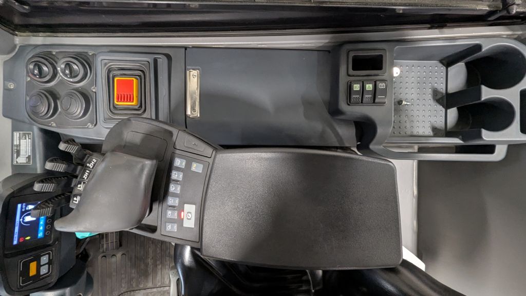 - Safety Light- Safety Pilot - Sonderausstattung Beschreibung: Joystick (Solo-Pilot), 1-Pedal Bedienung, Comfort-Sitz, Multi-Color Display, Optionstastenfeld, Comort-Ladebuchse hinten, hydraulische Lenkung, elektrische Bremse, Rückfahrwarner, Floor Spot hinten und vorne, Blitzleuchte, Hinterreifen werden noch erneuert